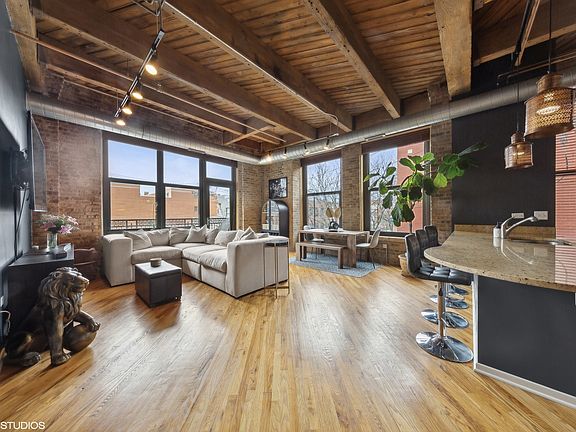 Welcome to the Chicago Lifestyle-a West Loop story told with unparalleled character at No. 10 Lofts. This corner unit is an escape from the mundane, a celebration of uniqueness in a city of skyscrapers. Step inside to discover a living space that defies the "cookie-cutter" norm. An expansive living room opens before you, featuring soaring timber beams and exposed brick that tell tales of Chicago's storied past. Modern updates like the precision lighting and a den space complement the home's historic charm, and the built-in wine fridge awaits to chill your favorite vintages. The kitchen, a statement of sleek design, is equipped with stainless steel appliances and flat-front cabinetry, crowned with neutral granite countertops for a look that's both minimalistic and inviting. Entertain with ease; the open floor plan flows naturally from culinary creations to lively conversations in the adjacent living areas. For your guests, a chic powder room showcases a glass bowl sink atop a minimalist base-simplicity and elegance rolled into one. Retreat to the master suite, a sanctuary featuring a generous walk-in closet and an enclosed bedroom with oversized windows, immersing you in the city's energy while offering a tranquil haven. Sunlight graces the master bath, revealing updated lighting, exquisite wallpaper, a double-sink vanity, and marble tilework surrounding a glass-enclosed shower-every detail thoughtfully curated to create a spa-like ambiance. No. 10 Lofts presents a lifestyle of convenience and luxury. With 24-hour door staff, management, and maintenance teams dedicated to the building's well-being, this community runs like a well-oiled machine. Elevate your fitness regime in a gym outfitted with the latest equipment, including Pelotons and TRX ropes. The party room extends into an outdoor terrace with grills, perfect for summer evenings under the skyline. A yoga room, business center, conference room, and a movie theater with stadium seating enrich your everyday living. In the heart of the West Loop, every amenity reflects the dynamism of the area. From Michelin-starred restaurants to expansive parks, this locale is the epitome of a lifestyle desired by many but achieved by few. Parking is available for an additional $25K-your portal to exploring the city with ease. This isn't just another place to live; it's a canvas for your life story to unfold. At No. 10 Lofts, every day is a new chapter in a tale of Chicago luxury.