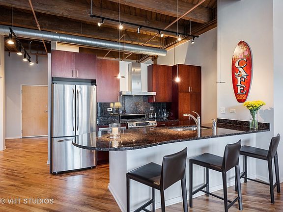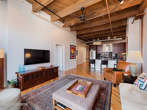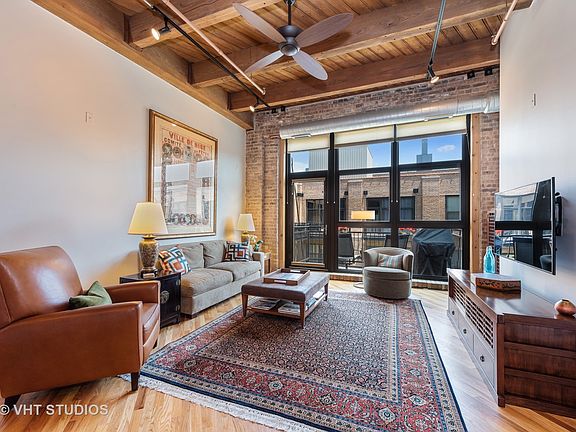 Well maintained, top floor unit in West Loop's popular "No. Ten Lofts" building. Spacious living room features 12' ceilings with exposed wooden beams, hardwood floors, and floor to ceiling windows complete with roll-down sun shade. The private balcony over looks the quiet courtyard. The granite kitchen has stainless steel appliances, built-in microwave, and chef's hood over the range. The master en-suite is fully enclosed; with a large walk-in closet & private bath. The second bedroom is spacious & will easily fit a queen set comfortably. Washer & dryer in-unit for convenience. The building is full service, with amenities including a recently upgraded fitness center (Peloton bikes!), media entertainment room complete with recliners, party room with full kitchen and pool table, complimentary business center, and a beautifully landscaped courtyard complete with seating and grills. In the heart of West Loop & close proximity to Fulton Market, Restaurant Row. Deeded parking for $30K