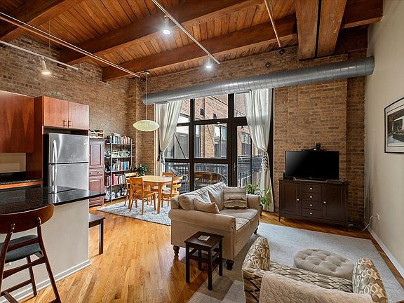 Top floor, sunny brick and timber loft with a fully enclosed bedroom, in a full amenity building in the West Loop! This unit soaks in the sunlight from the south facing windows that overlook the building's serene courtyard. This spacious home has tall ceilings, large windows, and hardwood floors. The open floorplan has an updated kitchen with granite and stainless steel appliances and a large breakfast bar. The living area has ample room for both living and dining! There is a private balcony accessed from the living room. The bedroom is large and features 2 big windows, a wall of closets, and is fully enclosed (with a full wall and door). The bathroom is a generous size and has slate tile floors and a soaking tub. Washer/dryer in the unit, garage parking available for 30k, storage onsite. This building has a stunning lobby, open and well designed with multiple seating areas, and a 24 hour doorstaff and onsite management. There is a large exercise room, Owners Lounge with seating/kitchen/pool table/and terrace, business center and conference room, and a theater! This is a fabulous West Loop location with easy access to the Loop, public transit, highways, and many dining, shopping and nightlife options!