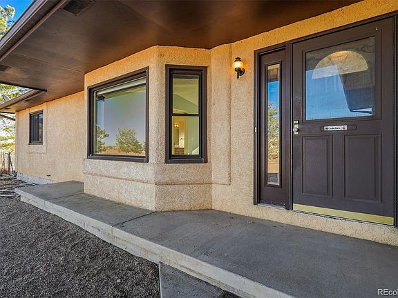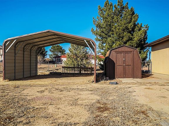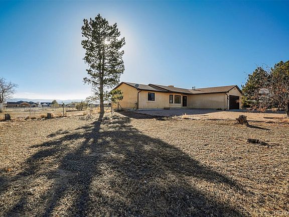 Experience stunning views in this spacious ranch home, ideally situated in the heart of Pueblo West Acreage. The exterior features an appealing xeriscape design, complete with a semi-circular driveway, mature trees, and a fenced backyard adorned with lovely garden beds. A large wooden deck offers breathtaking vistas of the Wet Mountains, while the property also includes an open pasture, two storage sheds, and a sizable carport suitable for a boat or RV. Upon entering, you are welcomed by a tiled foyer that leads to a generous living room highlighted by a large bay window. The home's layout includes a roomy mudroom with access to the two-car attached garage, an open sunny kitchen, and an oversized dining area with counter seating. Adjacent to the common areas, you will find a bright primary bedroom retreat featuring two side-by-side closets and an attached 3/4 bath. On the opposite side, there are two additional spacious guest bedrooms and a conveniently located hall bath. Descend a short flight of stairs to the basement, where a versatile common space awaits your personal touch. This area can be transformed into a large family room on one side, a game room on the other, and easily accommodates a fifth bedroom in the corner. Additionally, the basement includes a massive fourth bedroom, a three-quarter bath, and ample storage space with sturdy wooden shelving. Make this your HOME today!