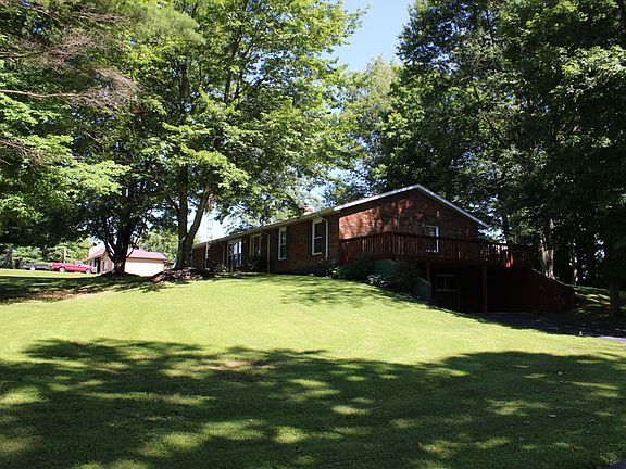 Beautiful 4 Br. 2 BA brick country home with 2.5 Ac. in a wooded park like setting and a full finished walk out basement. Home features a gas log fireplace, new pergo flooring, tile floors, updated windows and wrap around deck for entertaining. Nice 2.5 attached garage has large storage closet. Master suite has a walk in closet and a newly remodeled master bath with tiled shower and jet tub. Basement has a large family room and lots of additional storage and walks out to a patio. Also, there is a 3 car heated detached garage with 4 overhead doors, 100 amp service, bathroom and water access. Recently sealed black top driveway. Additional 12 x 16 garage with electric and concrete floor. Kids play yard and trampoline stays with the home. This move in ready home is in a great location just 2.5 miles from Salem and just off hwy. 135.