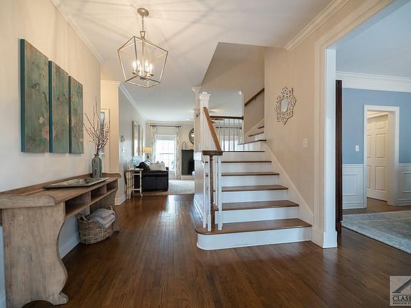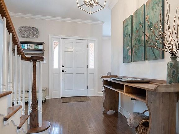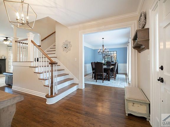 CAPTIVATING AND IRRESISTABLE best describes this fantastic, cottage-style home, complete with a babbling brook in the back. (Approximately 225 feet of Calls Creek frontage). Wooded and private, this charming three side brick home has it all! The spacious foyer opens to a dining room that could easily accommodate large gatherings. Hardwood flooring extend throughout most of the main level entertainment areas. The focal point in the great room is a wood burning fireplace with a beautiful antique, marble mantel The kitchen has stainless steel appliances, farmhouse sink, granite counters and breakfast room, with a stunning view and door leading to the large deck overlooking the creek. The private, main level master suite has a separate tub and shower Upstairs are 3 bedrooms w/Jack & Jill bath and a loft perfect for media/game area. The lower level has been finished with a large office/ play room, family room and full bath.