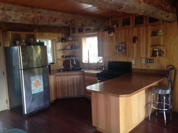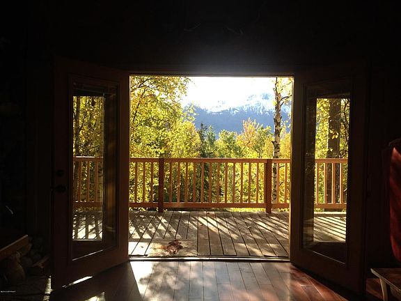 What a view! The main house has 3BR 2BA, 2 free standing wood stoves & a gas fireplace. Kitchen has hickory cabinets. Beautiful wood accents throughout and natural rock in bathrooms and installed by Marty Rainey. Large front deck facing Pioneer Peak - another deck off master bedroom. AND a separate cabin with a sleeping loft bedroom - currently used as a B & B or rental. Property has a greenhouse large natural rock fireplace (the rock is from Hope), large fenced garden area. Nicely landscaped with apple & cherry trees. Current, raspberries & strawberries too! In the back hard, across the railroad tracks is an airstrip for the use of this community. And did we say view? A truly magnificent view of Pioneer Peak. Easy commute to Anchorage.