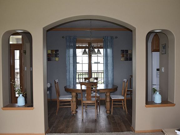 Stunning 4 Bedroom Home Situated On .86 Acres, Located Outside City Limits, On The Edge Of Town. This Home Features 9' Ceilings With A Open Concept Floor Plan. Amenities Include A Gas Fireplace, 3 Main Floor Bedrooms Which Includes A Master Suite With Coffered Ceiling, Walk-In Closet, Large Master Bath With Whirl Pool Tub, Separate Shower & Ceramic Tile Floors. Main Floor Laundry, With Large 2 Stall Attached Garage. The Walk-Out Lower Level Includes: In-Floor Heat, Large Family Room, Kitchenette And Wet Bar, 4th Bedroom, Bath, A Walk-Out Patio Off The Family Room And An Oversized Storage Room. You Will Never Want To Leave This Move-In Ready Property!! Qualified Buyers Only.