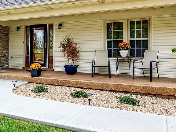 You will notice the new concrete drive, large patio with a covered section, and sidewalk to the covered front porch as you approach the home. You enter the Foyer with vaulted ceilings and the large Living Room straight ahead. The Living Room has a fireplace and opens to the rear concrete patio and old golf course view. The Kitchen is fully updated fantastic Kraftmaid cabinets with multiple pull-outs for easy access, countertops, and appliances. There is also a rear facing eat-in area in the Kitchen.