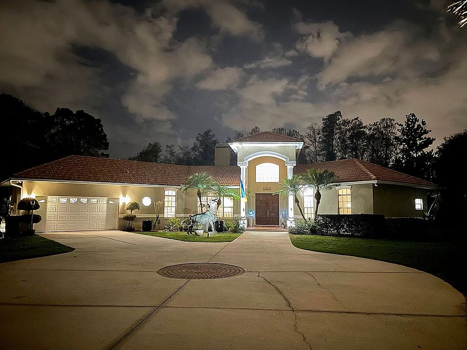 Come to easy living in a peaceful, fully furnished three-bedroom house on 2.3 acres in the middle of the city. Perfect location. Easy access to mayor highways 408 & 417, and a short commute to UCF, Valencia College, 15 min from airport and 10 from downtown. Shops, restaurants and hospital are just minutes away, and it’s not too far to the amusement parks. This beautiful custom residence has been meticulously maintained by its original owner and features a majestic entrance decorated with gardens and an imposing bronze sculpture. The foyer is spacious, with a very high ceiling. Located away from rooms for socializing are three bedrooms, two of them sharing a full bathroom. The third, the master bedroom, is spacious and has a sitting area for sipping your morning coffee, or simply contemplating the vista of the backyard nature. Double French doors access the master bathroom, where you will find a double sink with a vanity, separate shower, a toilet in its own room, spacious walk-in closet and a soothing garden tub. A double French door gives direct access from the foyer to the studio/gym where you can enjoy a private space to study, exercise or even play on the air hockey table there. From the studio you can climb a spiral staircase to reach a second floor with a bonus room featuring a beautiful balcony from where you can enjoy the view of the lower patio and the impressive backyard that will make you feel like in a retreat – all while resting in a beautiful handmade hammock strung across the balcony. On the first floor, in an open area and on two different levels partially divided by a double-sided fireplace, are the living room and the family room, the latter equipped with premium entertainment surround sound. Ample light washes through these two spaces, with a majestic view of the front and backyard adding to the spacious feeling. The main dining room is tastefully decorated and connects directly to a nook with direct access to the rear patio through a double French door. The kitchen is spacious with large cabinets and stainless steel appliances. Leading to the garage, a small hallway features a comfortable laundry room and a full bathroom ideal for visitors; a door through the back of the garage provides direct access to the pool and backyard bbq area. The garage is spacious enough for two cars, and has access to an attic. Escape to your own oasis in the big screened-in patio, which is half-covered and fully furnished and overlooks a serene, secluded backyard, with plenty of space for family and friends to gather and have fun in a very private environment. In addition to a beautiful hand-painted above-ground pool, the backyard features a BBQ area, plenty of space to play volleyball, soccer, and any other outdoor activity, an illuminated canopy next to a grill and a cabana where you can enjoy a delicious cocktail or cold beer, hammocks strung across trees, a large shelf that can be used as a workshop and to store tools, two 10x10 kennel cages, and even a chicken coop with some very cute and friendly little guests. The house is equipped with a premium alarm system and surveillance cameras all around the house outside and inside, which, like the locks and lights, can be controlled and monitored remotely. The house was fully pre-wired to make it fully functional from an IQ panel and expandable ELAN control. Full irrigation system and much more. The cost of the house includes ALL furniture, decoration, accessories, TV's, electronics, commercial lawn tractor, yard tools, too many things to mention! No showings available without proof of funds and /or pre-qualification from a reputable lender. Serious inquiries only.