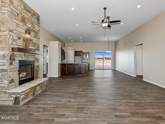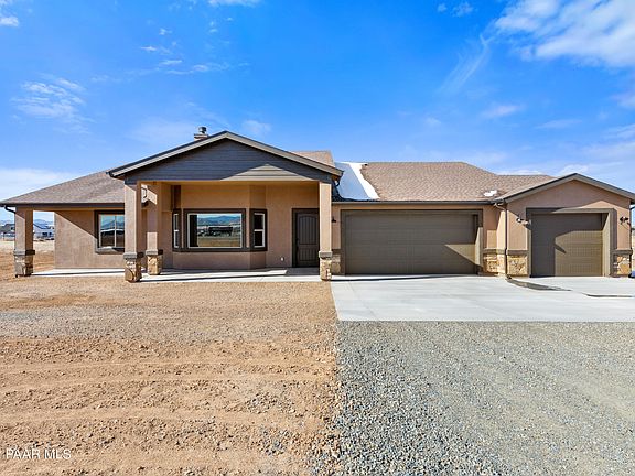 SELLER OFFERING $25,000 IN CONCESSIONS WITH FULL PRICE OFFER*Stunning Newly Construction Home located on 2 acres.* Peaceful & quiet neighborhood. Great Well: 20 GPM. Huge front bay window off entry has mountain view of Mingus Mtn, large slider in rear has panoramic view of sunset & mountains. Master has a great flow, large en suite, massive walk-in closet w/ laundry room access. Custom cabinetry, granite countertops throughout. Center Kitchen Island perfect for food prep and entertaining. Large closets throughout home. Front room perfect office space with a mountain view windows. Plenty of room to build detached garage, RV garage, RV pad, etc. Cozy up by warm stone fireplace. Expected Completion Date: Early February 2023.