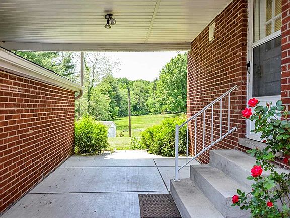 A beautiful two-acre lot is the setting for this one-owner, 1.5 story brick home with full basement. The living room with wood burning fireplace opens to the formal dining room and has a laminate floor extending through the hall and two bedrooms. The eat-in kitchen comes with appliances and features tile flooring. Two bedrooms with a full bath on the main level, with a large upstairs with third bedroom. The full partially finished basement with waterproofing system and porcelain tile floor has recreation space and two storage rooms. Updates include replacement windows throughout, the roof, HVAC and water heater. The detached two-car garage has attic storage, plus an attached two-car carport. A convenient covered breezeway leads from the garage to the house and creates another porch area in addition to the covered front porch. Nicely landscaped with roses, azaleas, and irises.