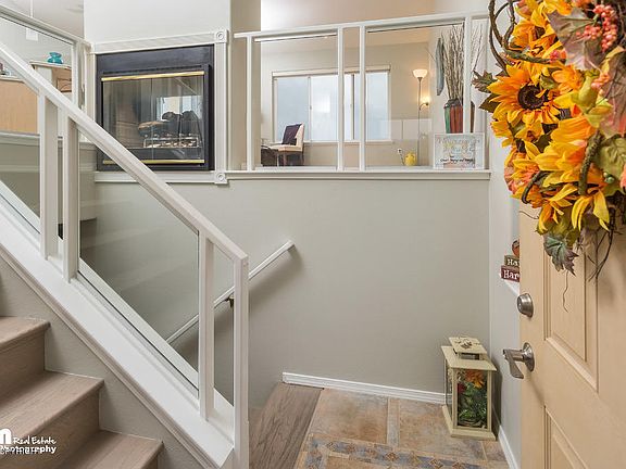 VIEWS of the City that Wow and at this price range!!! Customs Blinds, Tile work, decking, upgraded lighting, countertops, glass sided stairwell with a two sided gas fireplace, and a 3 piece hanging art that you can change out with the seasons. All appliances stay, including a new refrig. 10400 Ridge Park Upgrades and Features Perennials and low maintenance landscape. Four levels of stained decks in back, fenced and landscaped for privacy and views! Full afternoon and evening sun with incredible views of Cook Inlet and Airport from the main living level facing West. Master bedroom windows offers spectacular views of changing mountains. Glass-sided open entry stairwell with Two-sided gas fireplace. Custom Levolor Blinds on all windows. Oversize Master Bedroom with double closets and on-suite bath featuring marble and granite Upgraded lighting and Hubberton Forge mirror enhances elegance. Custom tile design in kitchen and dining room. Stainless steel kitchen appliances including (new) refrigerator. W/D stays in laundry room complete with shelves and cabinetry Upper deck perfect location for outdoor grilling with incredible view Included Custom Art 3-Piece Stainless steel hanging art display so you can change art with the seasons! Lower bedroom suite with access to exterior decks and/or office, game room, library or tv room adjacent to 2nd bedroom. lower bath with custom tile-work. Super clean garage with plenty of enclosed white storage cabinets, floordrain and sink. Doggie door to fenced yard. Home is adjacent to landscaped and grassy greenbelt (which the association maintains) Lovely, friendly neighbors. New Roof in 2012 New Refrigerator ï¿¿ coming soon New Stove in 2013 New Dishwasher in 2014 All light fixtures and doorbell replaced in 2013
