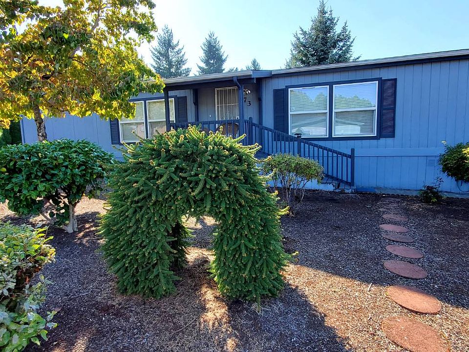 Welcome home to this beautiful, spacious 3 bedroom, 2 bath, Redman. This is a manufactured home in a park and NO land is involved with the sale of this home. This wonderful home offers enough room for everyone to be comfortable. With approximately 1782 SF of space and split living areas, it is the perfect option for many different scenarios. Large bright living areas both feature paddle fans and newer carpet. Kitchen features skylight, eating bar, pantry, an abundance of cabinets, refrigerator with bottom freezer and large stainless sink with upgraded faucet and garbage disposal. Main bedroom features a paddle fan, large closet and en-suite bathroom with new vanity, tile flooring and tiled walk in shower. Living room measures approximately 16x16.5', family room 22x15', dining room 12.5x10', kitchen 22x13', main bedroom 16x16.5 with 13x10' en-suite bath, 2nd bedroom 10x11' and 3rd bedroom 10x11'. Large laundry area comes complete with washer, dryer and has plenty of room for extra refrigerator and / or freezer. Easy care landscaping. Split parking areas. Security doors on front and back door. Front deck measures approximately 5.5x7', front awning 6.5x8.5', rear deck 3x4', carport 11x17' and 11x7' storage building. Furnace approximately 3 years old. Water heater approximately 3 years old. Carpet approximately 2 years old. Heat pump approximately 1 year old. Super Good Cents Construction. Heat pump for economical heating and cooling. Pet policy: 2 pets to 20 lbs ea. Located in highly desirable Giadanj Lake Estates a beautiful all age community that is close to bus, freeway, Max, shopping, restaurants and so much more. Base park rent for this unit is $1000 per month.