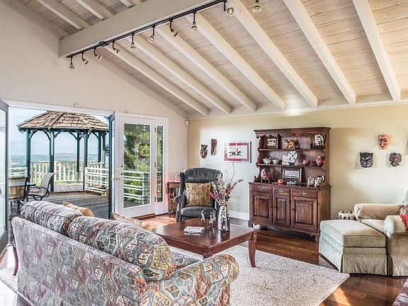 Spoil yourself with incredible panoramic ocean, valley, golf, mountains, and city lights views changing throughout the day. Open floor plan in the living areas, yet nice separation of bedrooms. Enjoy entertaining on a spacious deck and gazebo. Large four bed, three bath on 2.5 acres completely fenced. Gated circular driveway and second paved driveway to back with room for RV storage, barn, and has a paddock below. Come see this hilltop retreat with a view from every window!