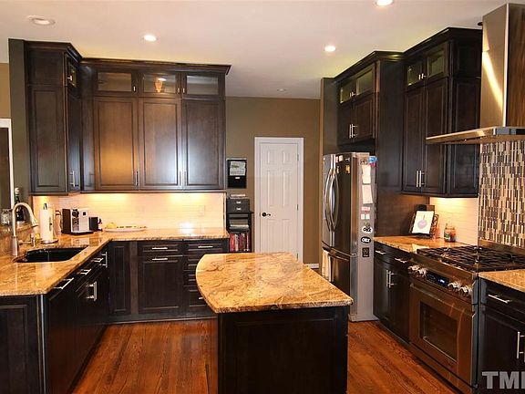 Updated Inside & Out! New Roof; Water Heater; HVAC (19 SEER); Kitchen-Granite Tops/Island, 42" Espresso Cabinets many w/Glass Fronts, Dacor Gas Range, Stainless Appliances; Paint; Flooring & More*Open Floor Plan w/Cathedral Ceilings*First Level Master Bedroom, Bonus, Office, Family, Living, Dining, Laundry & Wine Room*Private Lot backing to Woods w/Tree Buffer Next to a Neighborhood Parks*Large Deck overlooking Landscaped Gardens & Playset*Rocking Chair Front Porch*Wonderful Community*This is THE One!