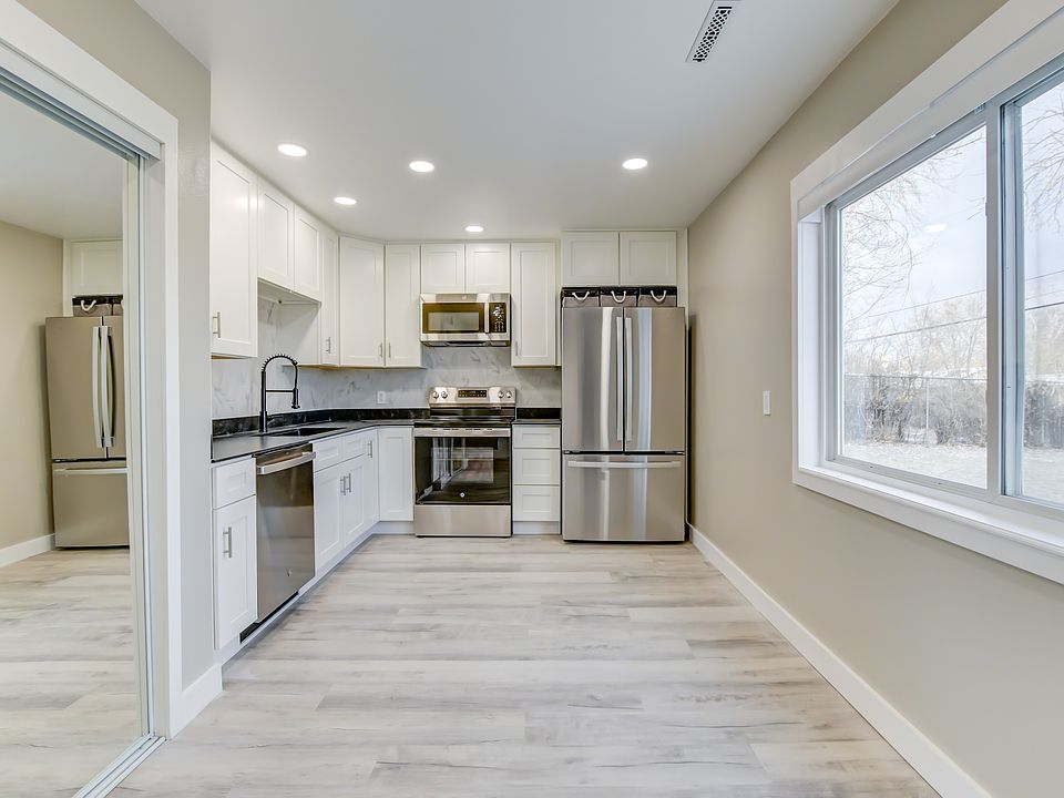 Discover your perfect home in this beautifully remodeled side of a duplex! Featuring a brand-new kitchen, modern bathrooms, new windows and fresh flooring and paint throughout, this property offers a perfect blend of style and comfort. Nestled in a serene neighborhood, enjoy the luxury of a spacious corner lot with a huge fenced open yard ideal for relaxation or entertaining. With a convenient 2-car garage, you'll have plenty of space for vehicles and storage. You'll love being just steps away from a park, dog park, and local schools, all while benefiting from quiet privacy. With easy access to Kipling and I-70, commuting has never been more convenient. Don't miss out on this exceptional opportunity schedule a viewing today! Renter is responsible for electric, gas, trash and estimated water. Last month and security due at signing. No smoking allowed. 12 months lease.