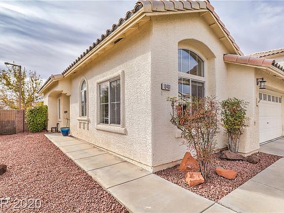 Charming single story, nestled in desirable Sycamore Ridge in the heart of Summerlin. Prime corner lot location & newly landscaped backyard w/raised back wall planter, just perfect for flowers, herbs & vegetables. Home interior offers beautifully maintained dark wood & neutral tile flooring, pot shelving & entertainment center nook w/ fireplace. Kitchen has granite countertops w/ built-in corner cabinets for your own coffee/tea bar, or spirit collection. Primary bedroom offers an ensuite bath/shower, dual sinks & walk-in closet. Two guest rooms share the additional tub/shower bath. Separate laundry room adjacent to guest bedrooms. This delightful home might just be the perfect one for your buyers. Schedule your showing "ASAP" as this won't last long in this market!