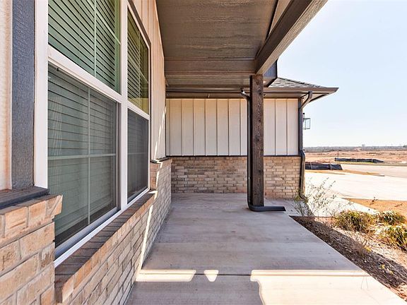 This 4-bed, 2-bath home in the brand new Canyon Ridge Estates addition in Mustang is just minutes from Yukon, Tuttle, and the John Kilpatrick Turnpike. A new elementary school is under construction just up Sara Road. The floor plan includes an open concept living area into the kitchen and dining nook, with wood-look plank tile in the common areas and carpet in the bedrooms and closets. The primary suite features separate his/her vanities, a spacious walk-in closet, luxurious walk-in shower with multiple shower heads, and a jetted tub. The home has a 3-car garage and covered back patio.