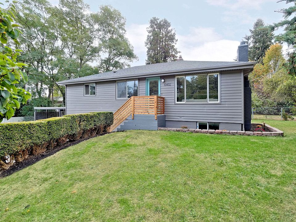 Remodeled Corner Lot Home in West Seattle. New roof. Refinished Hardwood floors. Spacious New kitchen has grey shaker cabinets, quartz counters, tile backsplash, stainless steel appliances. 2 bedrooms & remodeled full bath with tile surround and floors. Lower level features Large family room with wood fireplace, 2 additional bedrooms & new full bath. New carpet throughout. 1 car carport plus extra parking.