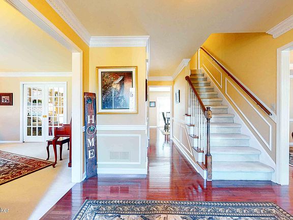Welcome Home to 10402 Black Iron Road! Situated on a beautiful lot backing up to a peaceful green space with a lake within viewing distance in the desirable Glenmary Subdivision is this beautiful traditional style home. Holding 4 bedrooms, 2.5 baths, this home boasts almost 3,000 square feet of finished above grade living space and has been meticulously maintained by its current owners! Enter into the foyer of this all brick home and you'll find endless possibilities on the usage of rooms. A formal sitting room with double doors leads to the spacious living room with built-in bookshelves, a gas/wood burning fireplace, and a wall full of windows, letting in an abundance of natural light. The enormous eat in kitchen with a vaulted window peak holds a multitude of cabinetry with granite counter tops with island and updated appliances. Off the kitchen is the formal dining room, half bath, attached 2 car garage, and double doors which lead to the large partially covered deck. Upstairs you'll find all 4 bedrooms, including the primary bedroom with bonus room and huge walk in closet, attached full bathroom with jetted soaking tub, standup shower, and double vanity. A second full bathroom and laundry room complete the second floor. The full basement is unfinished yet clean as a whistle and ready for you to finish it out! Schedule your showing today and make this beautiful home yours!