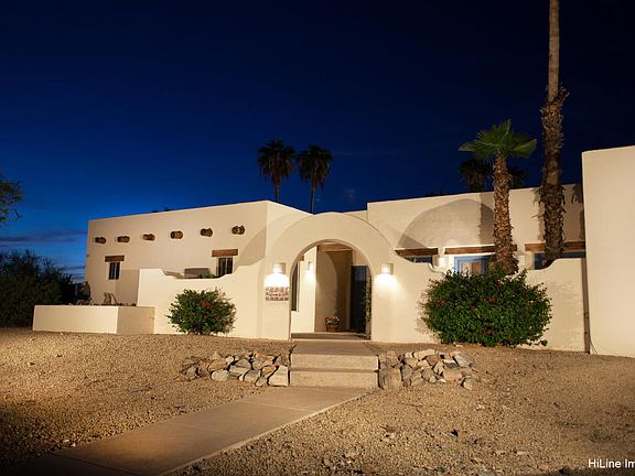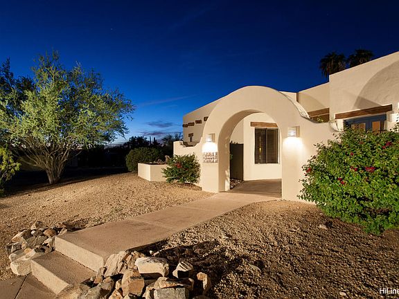 MOUNTAIN VIEWS! Wrapped in desert hues and mountain views this immaculate territorial home offers a spacious open floor plan and a resort-style back yard. Walls of windows, Saltillo tile floors, soaring ceilings, skylights, and French exits. Large kitchen opens to the family room and has spacious counters, Maple cabinetry, and a bright breakfast area with windows. The comfy family room has two-way fireplace. Huge master suite also has a beehive fireplace, separate vanities, sunken tub, walk-in shower & walk in closet and private patio. 4th bedroom also could be an office and includes private patio. The peaceful, picture- perfect back yard welcomes you with sparkling pebbletech pool, built in patio grill & attractive wall fencing. Set on nearly an acre, entertain under extended covered