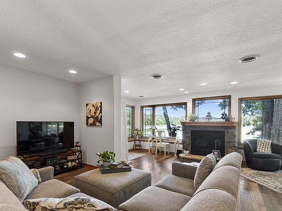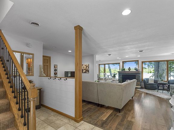 Welcome to your dream home on Long Lake! This beautiful property greets you with a half bath that overlooks a family room with breathtaking lake views. The kitchen is equipped with a roomy pantry, newer countertops, and stainless steel appliances. The main floor features two cozy living areas, each with a fireplace, a spacious dining room, two bedrooms, (including one with built-in bunks), and a full bathroom. Upstairs, you'll find a large bedroom with a private deck and sitting area, a laundry room, walk-in closets, and a stylishly updated bathroom. The backyard is a private oasis with a sandy beach and lovely landscaping, perfect for relaxation and outdoor activities. Long Lake is ideal for fishing, swimming, and more. This Long Lake home is a gem, offering comfort, style, and endless recreation opportunities.