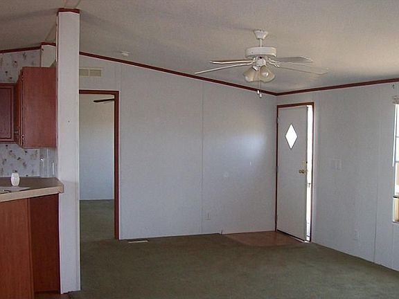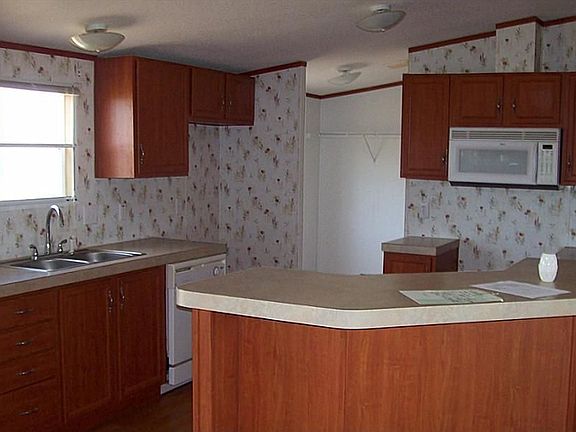 MANUFACTURED HOME ON LARGE LOT. ONE SPACIOUS LIVING AREA ADJACENT TO OPEN KITCHEN WITH BREAKFAST BAR, WHITE APPLIANCE PACKAGE INCLUDING DISHWASHER. SPLIT FLOOR PLAN FOR PRIVACY. TWO FULL BATHS.
