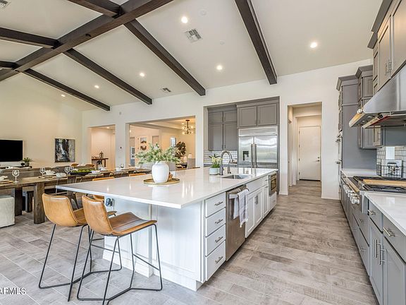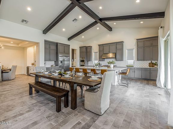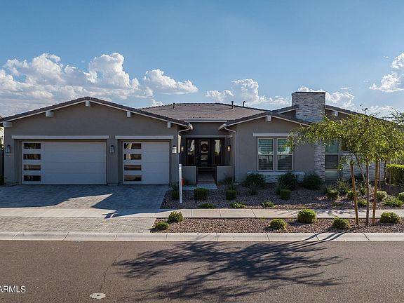 Looking for a home in the award-winning community of The Estates at Eastmark? Look no further! The famous ''Rocco'' plan sits on a gigantic lot, and includes 4 bedrooms, 3.5 bathrooms, and a den! The main room is cavernous- you will love the stunning vaulted ceilings w/ wood beams. The stylish, gourmet kitchen has a commercial-grade gas drop-in and massive hood (with six burners, a griddle, infrared food warmers), white quartz counters, grey cabinets with extended uppers, a beautiful backsplash, and a large walk-in pantry. Super functional, this entertainers dream home has a dining room with a wine fridge and bar area. The owner's suite has an extravagant bathroom including a ''wet room'' with designer tub and rainfall shower head. The backyard has a pergola, jacuzzi, fire pit, and a smoker! The back patio is a large as most peoples entire yard! Spend your days with friends & family at the community's posh and private recreation center (with fitness facility), pool, parks or at one of the many organized clubs. Enjoy the events such as the July 4th celebration, concerts in the park or karaoke night. Come see why the area is attracting people from all over the world! You are going to love living here!