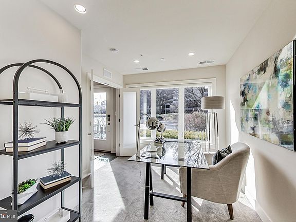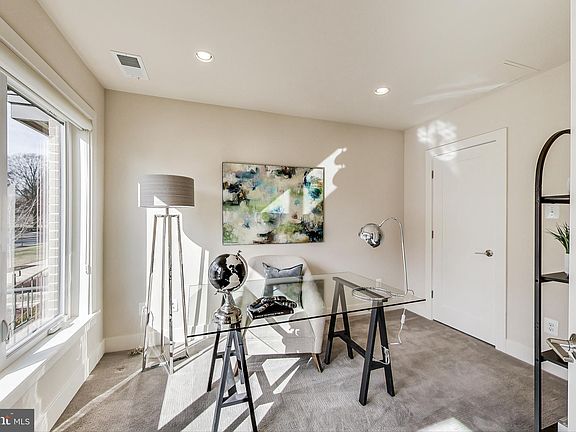Montgomery Row like you've never seen it! With a grand stoop reminiscent of a New York brownstone, this 2016 built home offers the luxury, convenience, and easy living you want in your next Bethesda home. The framed glass front door, large coat closet, and glamorous reflective tile provide a bright and welcoming reception area for you and your guests. The entry level bonus room has large front windows, walk-in closet, independent temperature control, and frosted glass French doors, making it an ideal dedicated office space or fourth bedroom. The custom Hunter Douglass pirouette shades provide privacy and light control while still allowing you to enjoy the view. At the back of the ground level is an attached garage with a large storage room plus a dedicated refuse bin nook. Back inside, the beautiful wood flooring starts at the first stair and continues throughout the home to the uppermost level. One floor up, you'll arrive at the dining room with ample room for entertaining. To the right is the spacious kitchen with soft-close cabinetry, Whirlpool stainless steel appliances, silk roman shades, large pantry, and granite peninsula breakfast bar. On the front side in the living room, cozy up to the linear gas fireplace at the flip of a switch. A marble tiled wall frames the fireplace, creating a truly fabulous focal point. A comfy powder room completes the main floor. Up another level, the primary suite includes a large walk-in closet, walk in shower, dual basin vanity, and two large medicine cabinets for great storage. Another bedroom suite with a large closet and full bath bookends this level, with the laundry conveniently located in between. Both bedrooms on this level are outfitted with blackout pirouette shades for deep slumber. The top floor has a wonderful open loft area as well as a third bedroom suite with large closet, full bathroom, and cordless wood blinds. The loft doors glide open easily, leading you to the pièce de résistance: the roof terrace with remote controlled linear gas fireplace and Duradek flooring. The terrace overlooks Fernwood Road, providing an open view and maximum privacy. With no home directly in front or behind, this townhome lives like a single family home with the benefits of a smaller footprint. A hose bib and an additional gas hookup on the terrace make grilling, heating, cleaning and plant care a cinch. Commute to anywhere with bus lines, metro, and easy access to 270 and 495. Shop at Wildwood Center and Montgomery Mall; Play at Pike and Rose, downtown Bethesda, and Cabin John Park. Whatever your pleasure, it's near here!