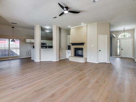 Gorgeously updated move-in ready single story home for Lease in Fort Worth, TX. Step into this fully updated 4-bedroom, 2-bathroom home, thoughtfully designed for comfort and style. Located in Chapel Creek neighborhood, this property boasts all-new flooring, fresh paint, modern light fixtures, granite countertops, brand-new appliances and more! The spacious layout features two inviting living areas connected by double-sided fireplace, complete with a dry bar, perfect for entertaining or extra storage. Enjoy meals in the formal dining room or the cozy eat-in kitchen, which includes a breakfast bar, a large pantry, and ample counter space. The primary suite offers all hardwood floors and en suite bathroom featuring dual sinks, an oversized walk-in shower with a bench. Three secondary bedrooms with plush new carpeting provide flexibility for family, guests, or a home office. Outside, the large, fully fenced backyard is ideal for outdoor gatherings, playtime, or simply relaxing.