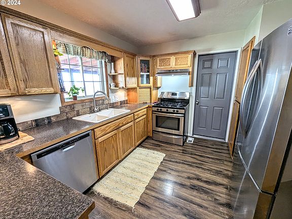 Looking for a quality house with a large shop? You've found it! This 5 bed, 2 bath home is on the edge of town in Island City, with great views of the mountains and the fields to the east. The property features a large shop with concrete floor, walk in cooler, rear access off a gravel (public) road, woodstove and more. The house is very clean and comfortable with a living room and a family room, a master bedroom and lots of amenities! Attached garage, additional storage building, covered patio, AC/Heat Pump, RV parking and much more! Call today to view this property.
