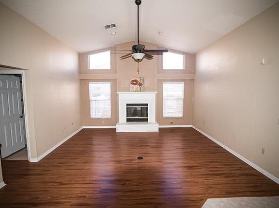 - Interior Features: Blinds, Counters-Laminate, Open Floor Plan, Walk-in Closet(s), Fireplace-Wood, Ceiling-Vaulted, Plant Shelves