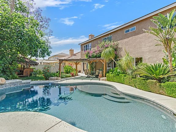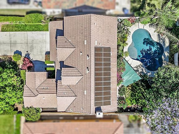 Take a look at this 6-bed, 3-bath estate nestled in a highly sought-after Mayfaire Gated Community! Heading through the front door, you'll love the XL formal family/dining room that provides ample space for a dining area and lounging furniture, as well as offers a gorgeous view of the backyard oasis. The kitchen is equipped with granite countertops, SS appliances, a center island, and tons of storage space. Each of the spacious bedrooms come with large closets and plush carpet. All three of the restrooms feature modern vanities, and the master comes with a separate soaking tub/walk-in shower. The home also boasts OWNED SOLAR, a 3-car garage, crown molding throughout, recessed lighting, and modern paint colors. In the backyard, you'll find that the current Owner's have completely customized the property with a large inground swimming pool, a pergola with plenty of shade, a custom cabana, as well as mature landscaping. Don't miss out, schedule your showing today!
