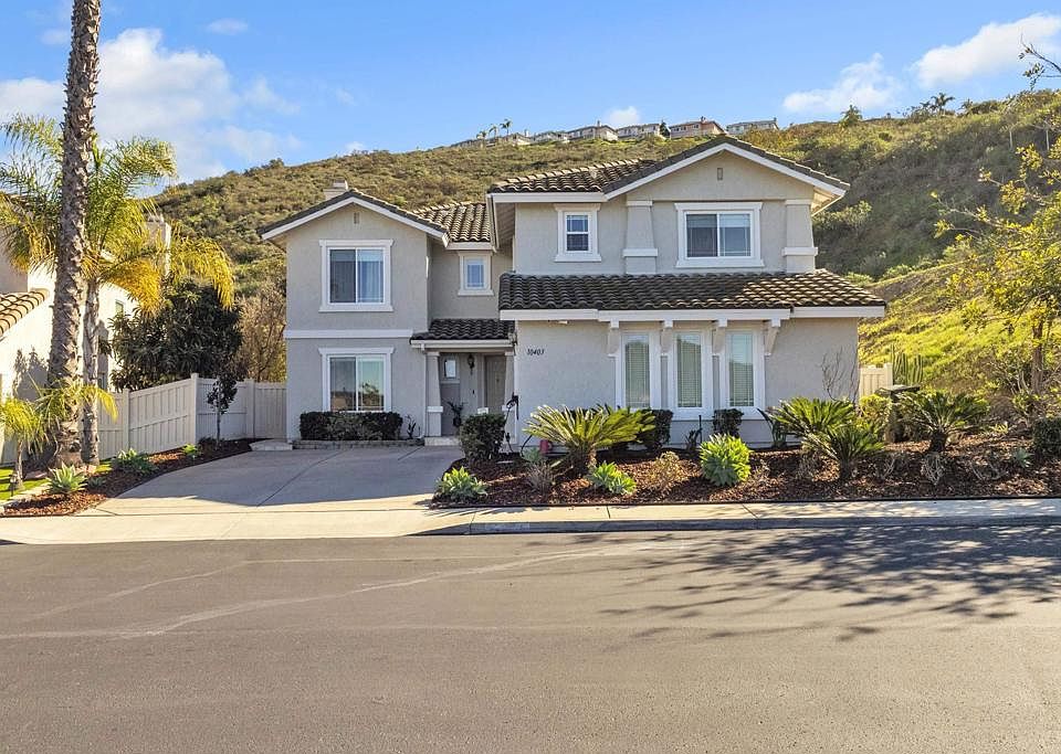 Beautiful 4BD/3BA home in the gated Lakeview at Highlands Ranch community, just minutes from San Diego. This hilltop residence offers soaring vaulted ceilings and breathtaking views reaching all the way to the Coronado coastline on clear days. Features include a full bedroom and bath on the main level, dual-zone HVAC, and a bright, open living area. The home was refreshed just three years ago with new interior paint, quartz and granite countertops, and modern finishes throughout. Energy-efficient with 20 solar panels under a long-term contract at a low 22.5¢/kWh. Enjoy resort-style community amenities including a pool, playground, scenic hiking and walking trails, plus ample street parking. Your new home awaits—don’t miss this opportunity!