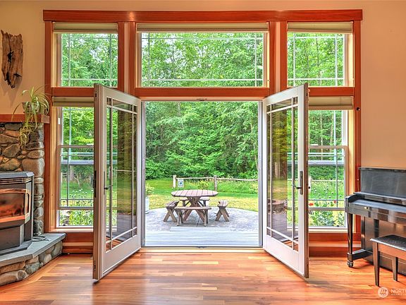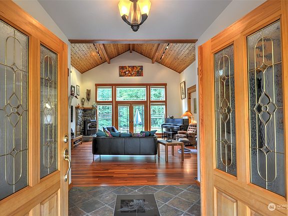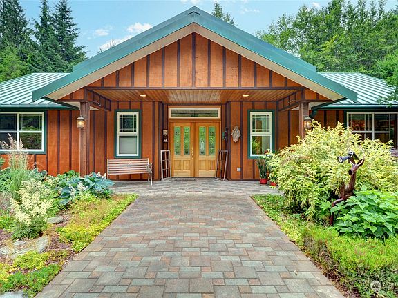 Welcome to the Stump Farm! Around every corner you spot something new/interesting. From the ADA access to the Lodge Style covered entry, unique finishes, and multiple upcycled treasures incorporated into the build. From the madrona wood breakfast counter, hickory cabinets and granite counters to the Tiger Wood Flooring in the vaulted living room with reading loft. Comfortable one level living with plenty of bonus areas. Truly one-of-a-kind home: the covered breezeway leads to the 2-car garage plus office and bonus room. Behind the home off the stamped patios there are nature trails, seasonal ponds, bridges, multiple plant species, garden areas. Just a private oasis for nature lovers. Don't forget the other outbuilding, the 3-car shop.