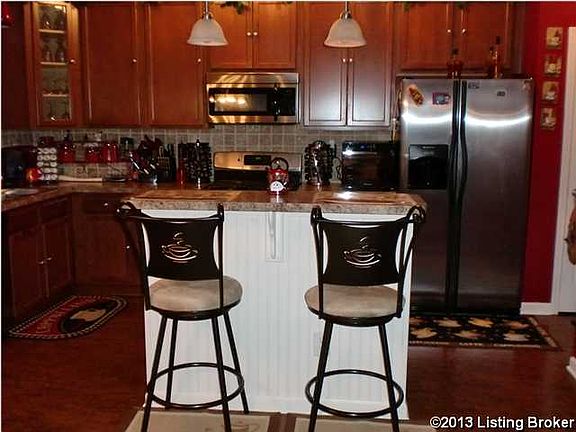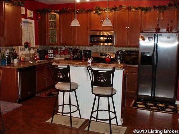 Welcome to Cooper Farms! Beautiful LaFayette floor plan features 3 bedrooms, 2.5 baths and is on a cul-de-sac lot in a wonderful neighborhood. THIS HOME HAS IT ALL AND IS IN MOVE-IN CONDITION! This 1.5 story home boasts an exceptionally open floor plan, neutral colors, 2 car attached garage, upgraded lighting and lots of decorating nooks awaiting your personal touches. Two-story entrance foyer with railed staircase and plant/decorating shelf leads to the two-story family room featuring a gas fireplace, ceiling fan, beautiful windows and a vaulted ceiling. The formal dining room has elegant arched openings, chair rail, wainscoting, new lighting and trey ceiling. The large eat-in kitchen overlooks the backyard and includes a 2 tiered island with workspace and a breakfast bar for barstool seating. pantry, stainless appliances, updated lighting, custom cabinets, tile backsplash, wood flooring, gas range and plenty of cabinet/counter space. This kitchen has upgrades galore and is great for entertaining and family dinners! The garage and mud / laundry room with cabinets and folding area are conveniently located off of the kitchen. A half bath completes the first floor. The HUGE master suite overlooks the backyard and features a ceiling fan, large triple window, new lighting, private bath and roomy walk-in closet. The master bath includes a garden tub, separate shower, double bowl vanity and a linen closet. Upstairs you will also find two additional good sized bedrooms and a full bath. In the backyard, you will enjoy the 12'x10' deck and private backyard that backs up to green space. The front yard features an adorable front porch and professional landscaping. Cooper Farms subdivision also offers a clubhouse, pool, fitness center and new playground for the kids. Just minutes from shopping, schools, restaurants and approximately 2 miles from the Gene Snyder and I65. THIS HOME IS A MUST SEE! CALL TODAY FOR YOUR PRIVATE SHOWING!
