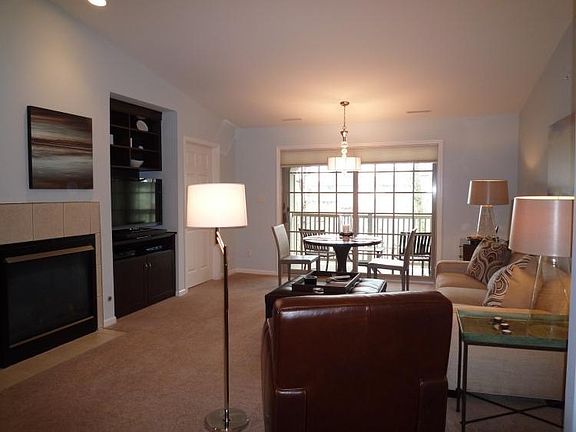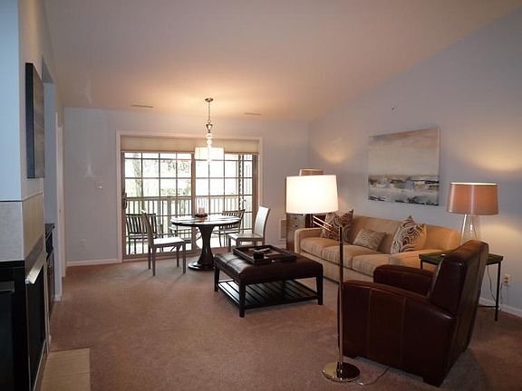 Enjoy Quiet, Relaxing Surroundings. This two bedroom, maintenance free, condo features an impressive cathedral ceiling in the living room and dining room, convenient gas fireplace in the living room with built in entertainment center; fully equipped kitchen with Maple cabinets, Granite countertops with breakfast bar; and a separate in-unit laundry room. The spacious Master Suite features crown molding and rope lighting, offers a large walk in closet and private bath with upgraded granite topped vanity. The second bedroom is conveniently positioned adjacent to the second bathroom which also features an upgrade vanity with granite. All closets feature California Closet organizers. Storage is no issue with a large 1.5 car attached finished garage with floorguard. This condo is move-in ready with neutral decor throughout and has been freshly painted and new carpeting. Taxes do not reflect any exemptions, i.e. would be much less with Homestead and mortgage exemptions.