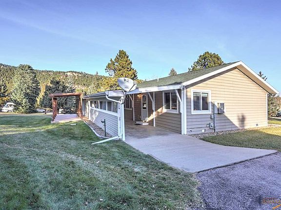 Listed by Kief Hansen with The Real Estate Group 605-484-3535. One level living on over a 1/2 acre lot, just outside Rapid City city limits with mature trees. Almost 1800 finished square feet featuring 3 bedrooms, 2 baths, laminate flooring, recently stretched and cleaned carpets. High quality kitchen cabinets with pullout shelves. Two stall detached carport along with a one stall carport attached to the house with an entrance door into the house. A front and rear deck. An additional 2 storage sheds and mature tress on a cul-de-sac. The home has association water and private septic. This home is located in a 55+ community per the covenants. Please call with any questions.