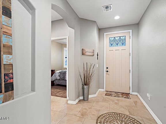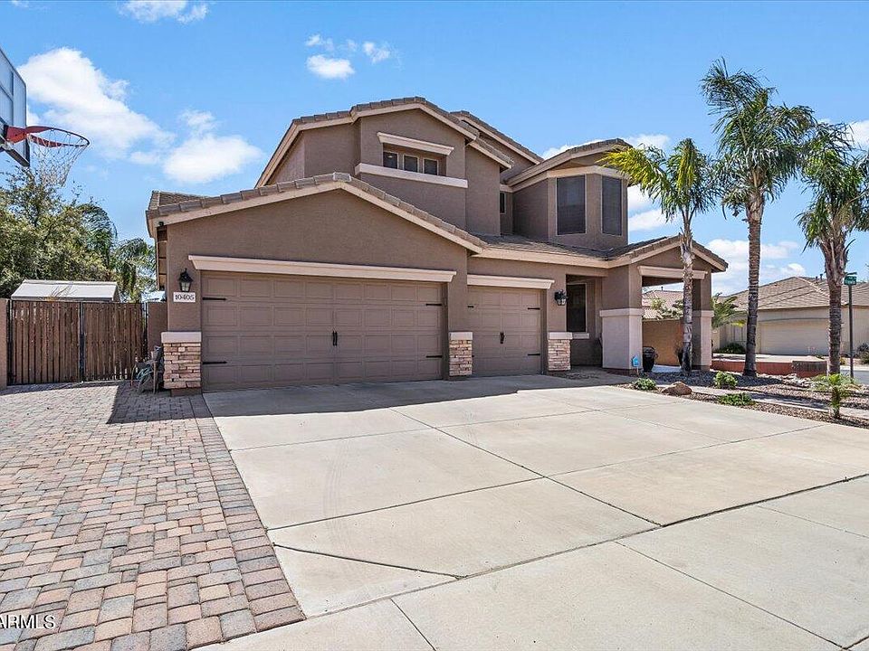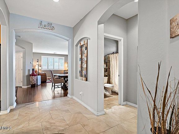 Beautifully cared for home in the Villages of Eastridge in Mesa! You will love the curb appeal with pavered walk way and additional pavers for extra on-property parking. A corner lot means no neighbors to the West, and no driveway to the North, you get all the parking. This unique floorplan offers 4 bedrooms and 3 bathrooms. One bedroom and full bathroom downstairs as well as a formal living room and family room. Off the kitchen and family room is an oversized flex space for your play room, home office, and currently being used as a game room. Also has a separate entrance! The kitchen boasts of upgraded 42inch cabinets and trim, granite countertops and custom glass backsplash. The spacious family room feels even bigger with the soaring ceilings to the second floor. Upstairs you'll experience an open to below loft to hide toys, or the video gamers. The generously sized primary bedroom offers a space for a reading nook, desk, or cozy movie night. The dual vanity and separate tub and shower are nicely sized no tiny bathroom here. The walk in closet is oversized and offers floor to ceiling storage.