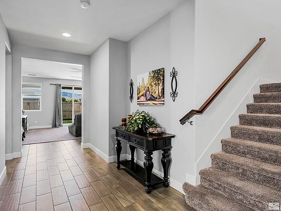 Welcome Home! This beautiful 4 bedroom, 3.5 bath, 3 car garage south Reno home has a custom, landscaped front yard that simply invites you in with its lovely curb appeal. This spacious home has so many areas that you can make your own, from a craft room or playroom to a formal dining room or office, this downstairs space is ready for your new ideas and will suit all of your needs., There is a large primary bedroom with a sizable en-suite bathroom that has double sinks, garden tub and separate shower, his and her closets and is located on the first floor. The main level also has an extra bedroom for family or guests with its own walk-in closet and full bathroom. The gorgeous kitchen and dining area are open to the family room which leads to a backyard with a covered patio and brand new artificial turf and pavers. Next to the kitchen is a long walk-in pantry, half bath and laundry room with a custom shelf that sits on top of the washer and dryer for folding and separating laundry. As you walk upstairs, you’ll be amazed at the large open loft which can be a great spot to settle in for a movie night, game night or just hanging out. There are also 2 more upstairs bedrooms, storage space and a full bathroom. Come check out this move-in ready house and be ready to call it home!
