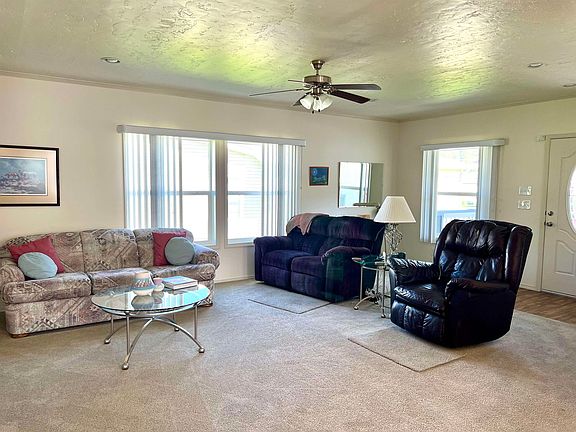Like new 3bd/2bth 1647sf 2016 Champion manufactured home. Enjoy low maintenance, one level living in a 55+ community. Open concept with formal living room, spacious kitchen with dining area/eating bar and entrance to a beautiful pergola covered patio. Primary bedroom has large bathroom with double sinks, shower with seats and walk-in closet. Storage shelves and utility sink in the laundry room. 2 car garage with opener, sprinkler, gas heat & a/c. All appliances included. Gated community with clubhouse and RV rental parking available. Monthly lease $499+$99 w/s/g.