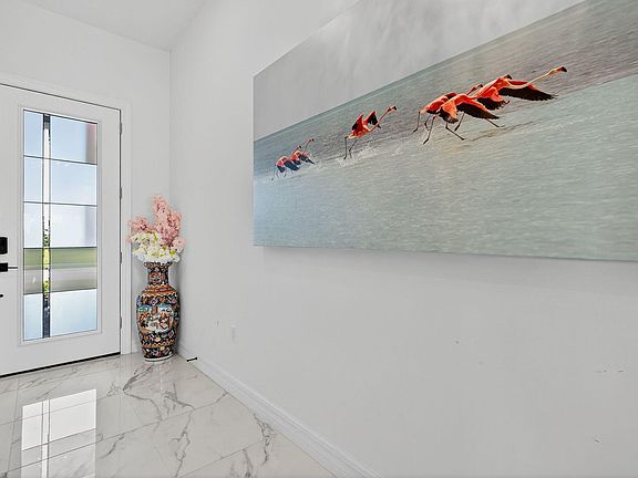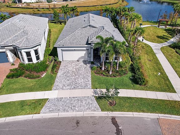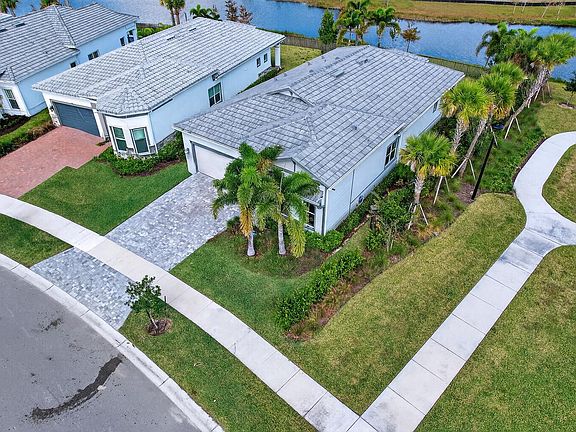 This beautifully upgraded Prestige Model in Avenir sits on a premium wide-water lakefront lot with no rear neighbors and offers more than $150,000 in high-end improvements. The home features modern marble-look porcelain tile throughout, designer lighting, and a fully integrated smart-home system with cameras, alarm monitoring, Sonos speakers, and professional structured wiring that provides hard-wired internet, TV, and audio connections in multiple rooms. The gourmet kitchen includes stacked 42'' cabinets, soft-close drawers, roll-out trays, extended island panels, matte black hardware, and upgraded quartz countertops. The great room opens to peaceful lake views through oversized sliders, creating a bright and open living space. The primary suite features a custom slat accent wall and a spa-style bathroom with upgraded cabinetry, fixtures, and quartz counters. Additional upgrades include Closets by Design custom storage, a full LeafFilter gutter system with lifetime warranty, professional landscape lighting, and a brand-new Generac whole-house generator for full power protection during storms. The home also features motorized storm protection screens, offering fast, effortless hurricane security and added shade when needed. A home systems warranty is included, providing added protection for electronics and appliances. Residents of Avenir enjoy award-winning amenities such as a resort-style clubhouse, beach-entry pool, lap lanes, spa, fitness center, tennis, pickleball, splash park, playground, and miles of walking trails. This home is better than new, move-in ready, and loaded with upgrades inside and out.