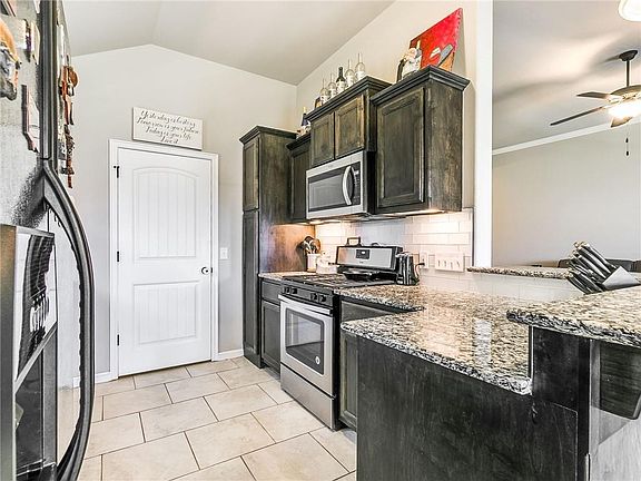 Looking for a move in ready almost new home with nice upgrades? Look no further, this one is it!! Only 2 years old, this home has the feeling of a brand new home only better! Owners have extended the 2 car garage to a 2.5 car garage so you have that extra space you need for storage or workspace! They have also extended the back patio that's ready for your chimenea and favorite lounge chair to enjoy the nice fall nights! Great sidewalks in the neighborhood ready for your evening strolls! You will love the floor plan with a built in desk area off of the master suite that's split from the other two bedrooms and bathroom. This home has wonderful storage and makes use of every inch of the home! Tankless hot water tank and this home is an OG&E Energy Efficient home with electric bill only $50-$70 a month, sellers say they love the cheap utility bills! Come take a look before it's gone!