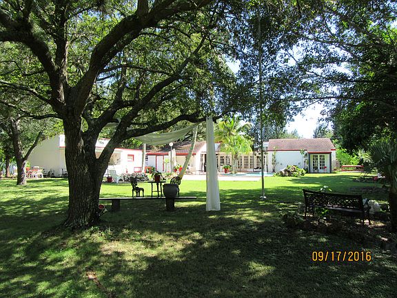 One of a kind residence with guest house situated on an acre lot in The Falls area! Designed by an architect, this 4 bedroom home was created to allow the natural light to flood in. Vaulted ceilings with high windows and French doors in all rooms open to the backyard and courtyard. The guest house features a living room, kitchen, bedroom, full bath, and also offers a cozy patio area. Perfect for guests, in-laws, nanny, or maid quarters. Great location to everything!