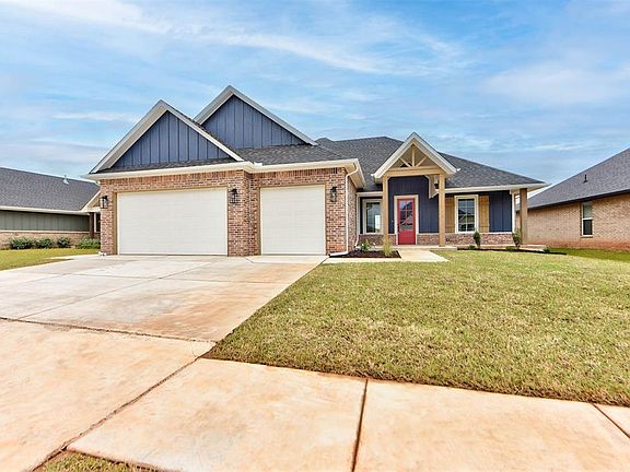 UP TO $10K TOWARD INTEREST RATE BUY DOWN, CLOSING COSTS W/PREFERRED LENDER! Builder can easily add a closet to the office to create your 4th bedroom! Energy efficiency is top-notch here with SPRAY FOAMED INSULATION, TANKLESS HOT WATER HEATER, energy-efficient windows, 90% upgraded furnace. OVERSIZED GARAGE is upgraded — 8-FOOT DOORS with 10-FOOT CEILINGS (Get that Larger Truck or SUV in there with ease) plus a side door for trash-can access. Welcome to this stunning modern farmhouse located in the highly sought-after Mustang School District (with a brand-new elementary school!). Thoughtfully designed for comfort, style, and function, this home blends elevated finishes with smart, energy-efficient features to create the ultimate living experience. Inside, you’ll find 3cm quartz countertops throughout, upgraded lighting & plumbing packages, and fans in every bedroom. Love to cook? The upgraded appliance package includes a gas cooktop with pot filler, built-in microwave & oven, custom vent hood, and a walk-in pantry. And all of the cabinets are soft-close. The dining area features a custom accent wall, while the primary suite boasts a sliding barn door, a soaking tub with separate custom-tiled shower, and a large walk-in closet with built-in shelving. Main water shutoff + under-sink shutoff valves. Enjoy covered front porch and back patio with lighting, full gutters, and a sprinkler system. This home doesn’t just check the boxes—it raises the bar for modern living. Don’t miss your chance to own this showstopper in Mustang Schools. Schedule your showing today!