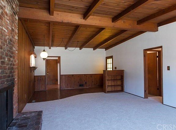 This traditional charmer features a classic floor plan with a wood floor entry that leads to an open and spacious living room. The living room has a warm wood beam ceilings, plush carpeting, a brick fireplace and sliding glass doors to the rear yard. Eat-in kitchen offers tiled counter tops, Knotty pine wood cabinetry, double sink, dishwasher and direct garage access. Secondary bedrooms feature wall closets, ceiling fans, base moulding, carpeting and tons of natural light. The master bedroom offers a wall-to-wall carpeting, wall closet and a private 3/4 bathroom with a large shower stall, wood cabinetry and sink w/ vanity. The low maintenance rear yard offers a gated dog run, sparkling pool, brick planters and ample room to entertain.