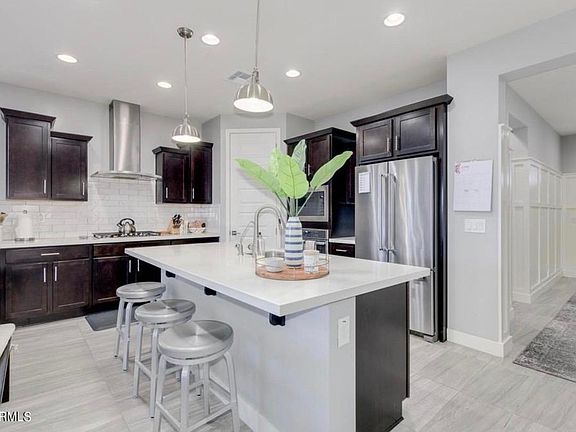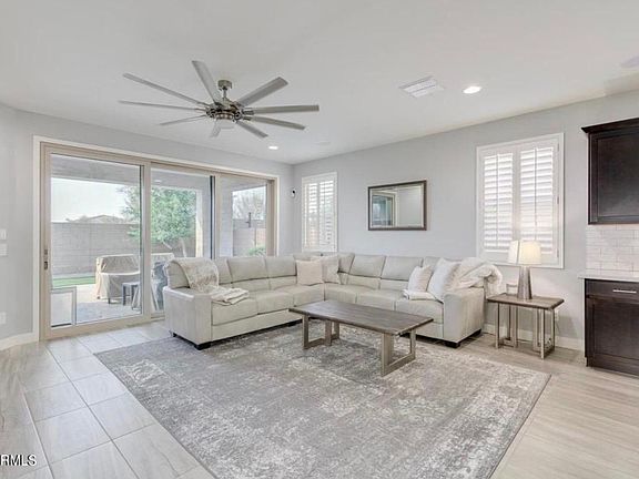 Don't miss the opportunity to live in this 4 BR 3 BA home nestled in the family friendly community of Eastmark! The welcoming porch, paver driveway, and tall entrance door enhances this home's charming curb appeal. Once inside you will fall in love with the open concept living space with gorgeous gourmet kitchen, neutral paint, plantation shutters, tile flooring, and high quality berber carpet. The kitchen boasts quartz countertops perfectly accompanied by espresso cabinets that produce ample storage space, reverse osmosis water system, soft close drawers, a beautifully tiled backsplash, large single basin sink, modern pendant lights, recessed lighting, a gas stove top, stainless steel appliances, and a massive pantry. The kitchen overlooks the living and dining space that encompasses a modern ceiling fan and a full wall slider door to the backyard. Each bedroom is perfectly sized and 3 of the 4 bedrooms feature walk-in closets. One of the best aspects of this home is the jaw-dropping master suite, with windows galore providing the perfect amount of natural light. A sliding barn door leads to the master bathroom which boasts dual sinks, a colossal walk-in closet with built-in shelving, and a luxurious super shower that is only one year old. A few other perks this home has to offer is an extended travertine patio, astroturf, large trees that creates an easy to maintain, relaxing and fun atmosphere. It also features 5" baseboards throughout the home, cabinets in the laundry room, and surround sound inside and outside of the home. As a tenant, you will have full access to all the amenities the Eastmark community has to offer: a luxurious community pool, splash pads, numerous parks, the Steadfast farm, the Handlebar Diner, and it's very own state-of-the-art clubhouse, The Mark. The Mark hosts events throughout the year and a wide variety of family friendly games to play. If this home checks off all of your must haves, then apply today before someone else makes it their home! 1 year lease. Lease term starts October 1st, 2021 and ends September 28, 2021. This is a no smoking lease. Pets are negotiable. Security deposit is $4,200. Tenant pays all utilities.