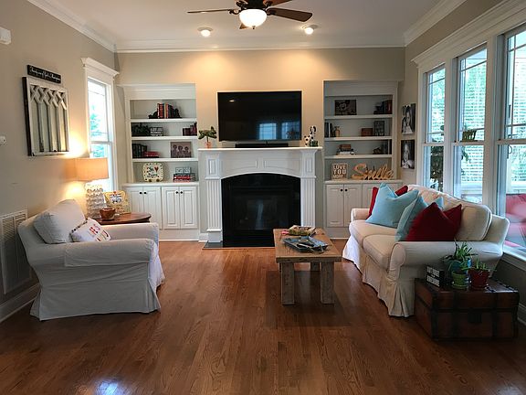 3 bedrooms, 2.5 baths with a bonus room. Corner lot with fenced in yard. Natural area across the side street and mature landscaping provide rare privacy in this Charleston style home with wonderful outdoor living spaces. Tons of upgrades and special details. Upstairs master. Jack & Jill bath between bedrooms 2 and 3. Laundry downstairs with laundry chute. Quaint office space downstairs. Formal dining room with tray ceiling. Open kitchen to breakfast room and family room. Granite countertops and stainless appliances. Built-ins surrounding gas fireplace. Dual stairs. Large screened in porch along with two open porches and a patio. New HVAC (2015) upstairs, attic fan installed and freshly painted exterior (fall 2016). Refinished hardwood floors (June 2017) and stairs (to be done September 2017). The trim will be newly painted after the stairs are completed. New carpet to be installed upstairs. Please note that this home is being listed FSBO prior to the completion of certain projects since they are already in the works. Don't miss this wonderful opportunity to live in the highly sought after community of Bedford at Falls River! We already have a listing agent so please no soliciting. Buyer's agents welcome!
