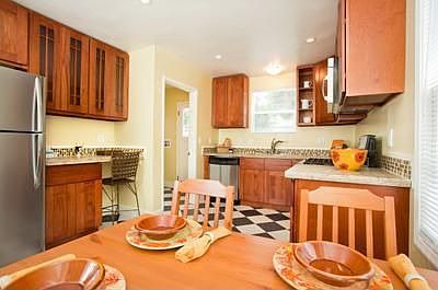 Tasteful discretion was the key in updating this charming bungalow in Toler Heights. Modern tile & stone treatments prevail in kitchen & bath, while the pristine, 1940s door hardware remains. Neutral but stylish paint hues compliment the HW floors, stained to a darker shade. Adjacent to the detached garage find a large bonus room, ideal for home office or guest bedroom. Yards are freshly landscaped, with a small, raised vegetable garden & new deck in back. Conveniently located to everything, this adorable home is a perfect 10 for the 1st time buyer!