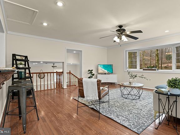 Beautiful four-bedroom, three bath home nestled in the sought after Laurel community of Montpelier Woods! Sense of arrival begins as you step onto the inviting covered front porch where hours of front porch sitting can be yours. The rich hardwood floors and pleasing neutral color palette invite you to experience the light filled interiors of the spacious dining room embellished by detailed millwork . The heart of the home is the magnificent gourmet kitchen highlighted by stunning cabinetry, granite counters, center island with Jenn Air cooktop, stainless steel appliances and double wall oven embellished by a gorgeous custom backsplash. Flow seamlessly into the stunning and bright living room adorned by a picture window perfect for admiring the many colors of the changing seasons or catch up on some light reading in the step-down bonus room. The primary bedroom suite extends comfort and tranquility spotlighted by plush carpet, crown molding, spa like primary bath with a frameless glass shower showcasing designer tile work and a generously sized 16x13 walk in closet! Two additional bedrooms and a full bath complete this amazing level. Cheer on the home team of the big game by the warmth and glow of the brick surround wood burning fireplace in the casual family room. An additional bedroom, full bath and laundry complete this level. Living in Laurel extends convenient access to Washington DC, Baltimore, Silver Spring, Columbia and so much more! Historic Savage Mill, Laurel Shopping Center, Laurel Lakes Center and Columbia Crossing provide many nearby shopping, dining and entertainment options. Convenient access to US-1, I-95, MD-100, and MD-32, Ft. Meade and BWI. This home is a must see!