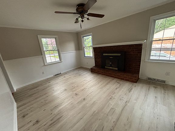 * Huge family room (17x12)) with 3 large windows and large brick wood burning fireplace with an insert and and a blower