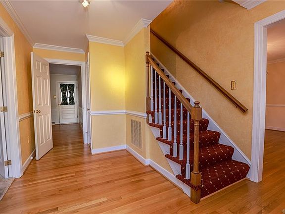 Nestled on a wooded cul-de-sac lot in the heart of the West End and walking distance to Godwin High, this spacious home has something for everyone! The hall foyer is flanked by large formal rooms or utilize the living room for your home office with French doors for added privacy. As you head to the rear of the house, you'll find the family room with a brick fireplace and cozy beamed ceiling while directly adjacent is the renovated kitchen with tile floors, granite countertops, stainless steel appliances and custom cabinets. Off the kitchen is a tiled sunroom that opens to a gorgeous porch with brick paver floor. On the other side of the sunroom and with a pass through to the kitchen is a vaulted recreation room with built-in seating to enjoy as you wait your turn at the pool table. There's no need to go out, everything you need to entertain is here! Finishing off the first floor is an oversized mud room with its own private entrance. Upstairs the owner's suite features a luxurious bath with an enormous spa tub, walk-in closet and private retreat for hobby/exercise. The 2nd floor also offers three additional bedrooms and a hall bath. Hurry and be in this home for the holidays!