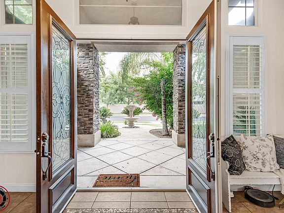 Welcome to this 4-bed, 3-bath home in the highly sought after Brighton gated community with so much to offer. Heading through the front doors, you will be greeted with a view of the family room, which features tile flooring, tray ceilings, and a great view of the backyard. The gourmet kitchen comes equipped with granite countertops, a walk in pantry, breakfast bar w/ custom light fixtures, and SS appliances. The large living room has built-in shelving, a gas fireplace, as well as access to the backyard. Each bedroom has been elegantly designed with XL closets, plantation shutters, and tray ceilings w/ recessed lighting. The three restrooms boast large vanities, plenty of storage space, and the master bath has a walk in shower, soaking tub, and a dual sided fireplace. Heading out back, you will be amazed with the luscious landscaping, the covered patio area w/ speakers, pool w/ water slide, spa, and a sunken-custom outdoor kitchen. (Some pictures may have been digitally enhanced)